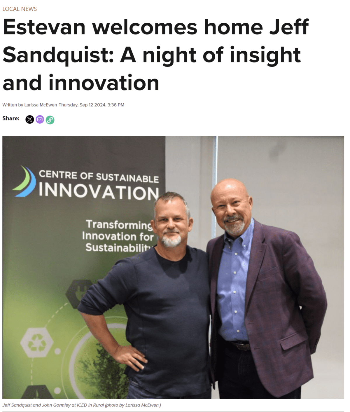 Read the full article here: Estevan welcomes home Jeff Sandquist: A night of insight and innovation